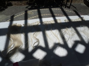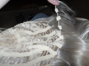Back in June, I was searching frantically for some blond wefts that would match my base wig for my Tyrigosa costume. All I found were human hair wefts, wefts that were ridiculously expensive, and loose hair that may not dye right and that I’d have to make into wefts myself.