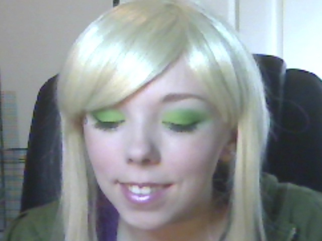 I took the white from the Coastal Scents pallet and blended it on the brow bone, and down slightly into the green shadow, to blend it further, and took an angled brush and applied some of the 3rd lightest green shadow along the lower lashes.