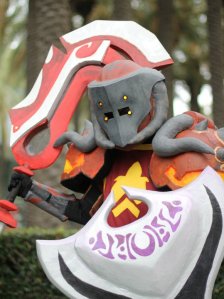 (This is our awesome friend Pocket… Mario made the helm, shield, sword, and shoulders, she made the horns on them and painted all the pieces)