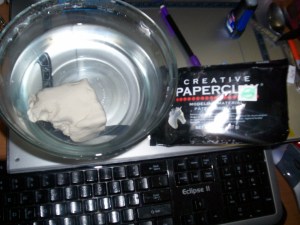 Now grab your paperclay and begin shaping and sculpting. (My clay was already opened from a different project and was dried out. If you soak it in water it becomes soft and usable again.)
