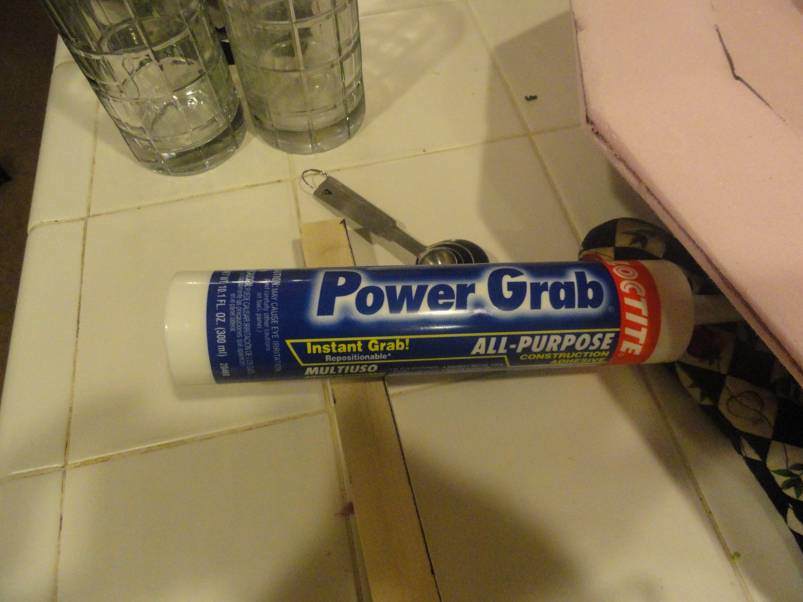 The Power grab worked great for this application. It spreads well and is applied with a caulk gun. 24 hours later and the wood blocks are now forever part of the foam structure.