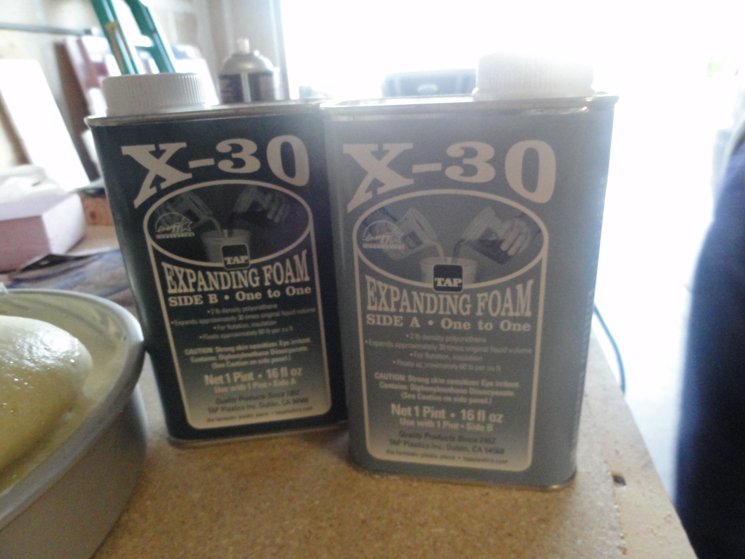 We decided to use a self skinning two part expanding foam from Tap plastics. This foam expands to 300% volume and worked well for this application.
