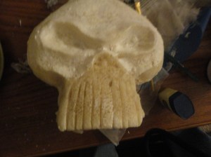 After some attention with my trusty light weight modeling paste, I smoothed the surface out and have a very solid but extremely light skull to attach to my axe.