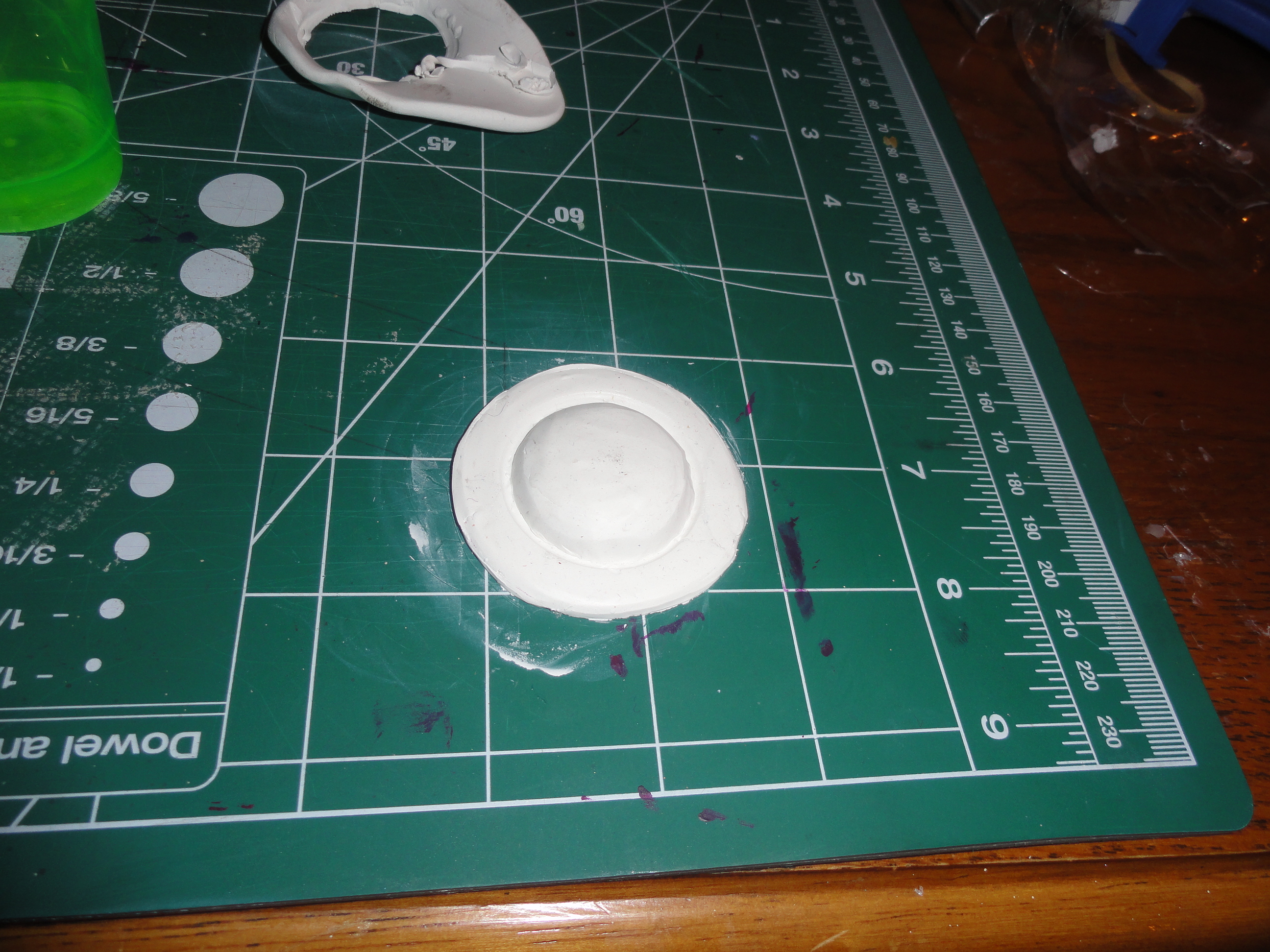 Take some Sculpey, and sculpt out the shape you want. I think we may have made the white part a bit wide; but it works. I used a shot glass (that I got for my 21st birthday, obviously) to make the outside round shape, as well as the inside circle.