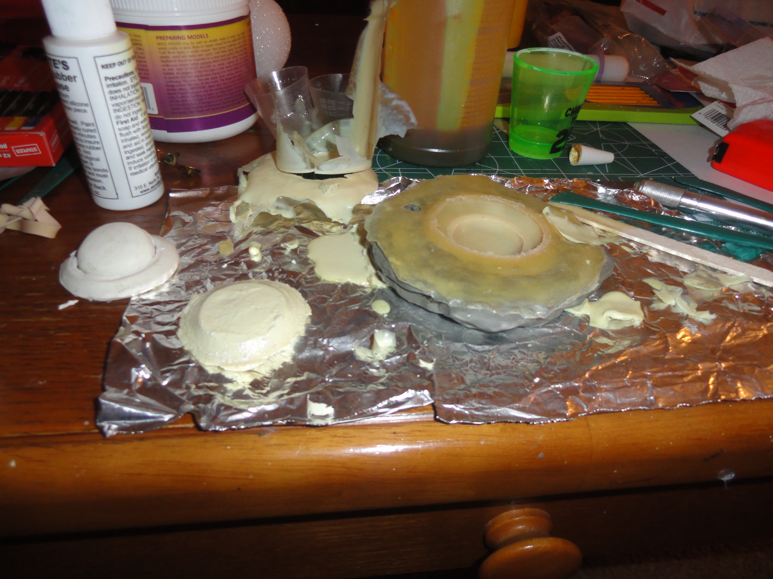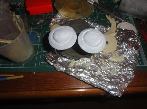 Then, mix and pour a two part casting resin onto the back of the sculpt to make a two part squish mold.