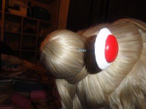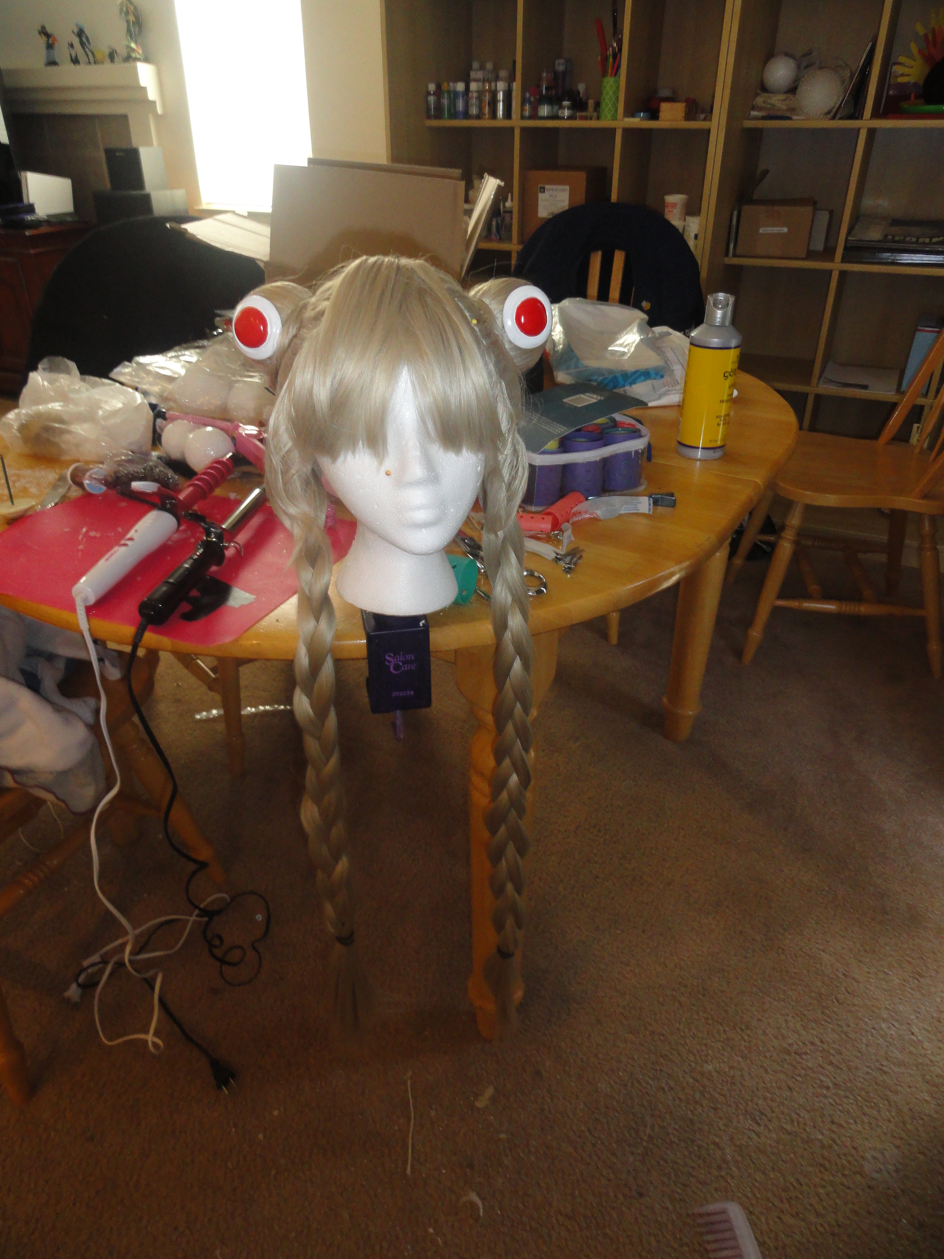 Now that our buns are on the wig, it’s starting to really look like a sailor moon wig!