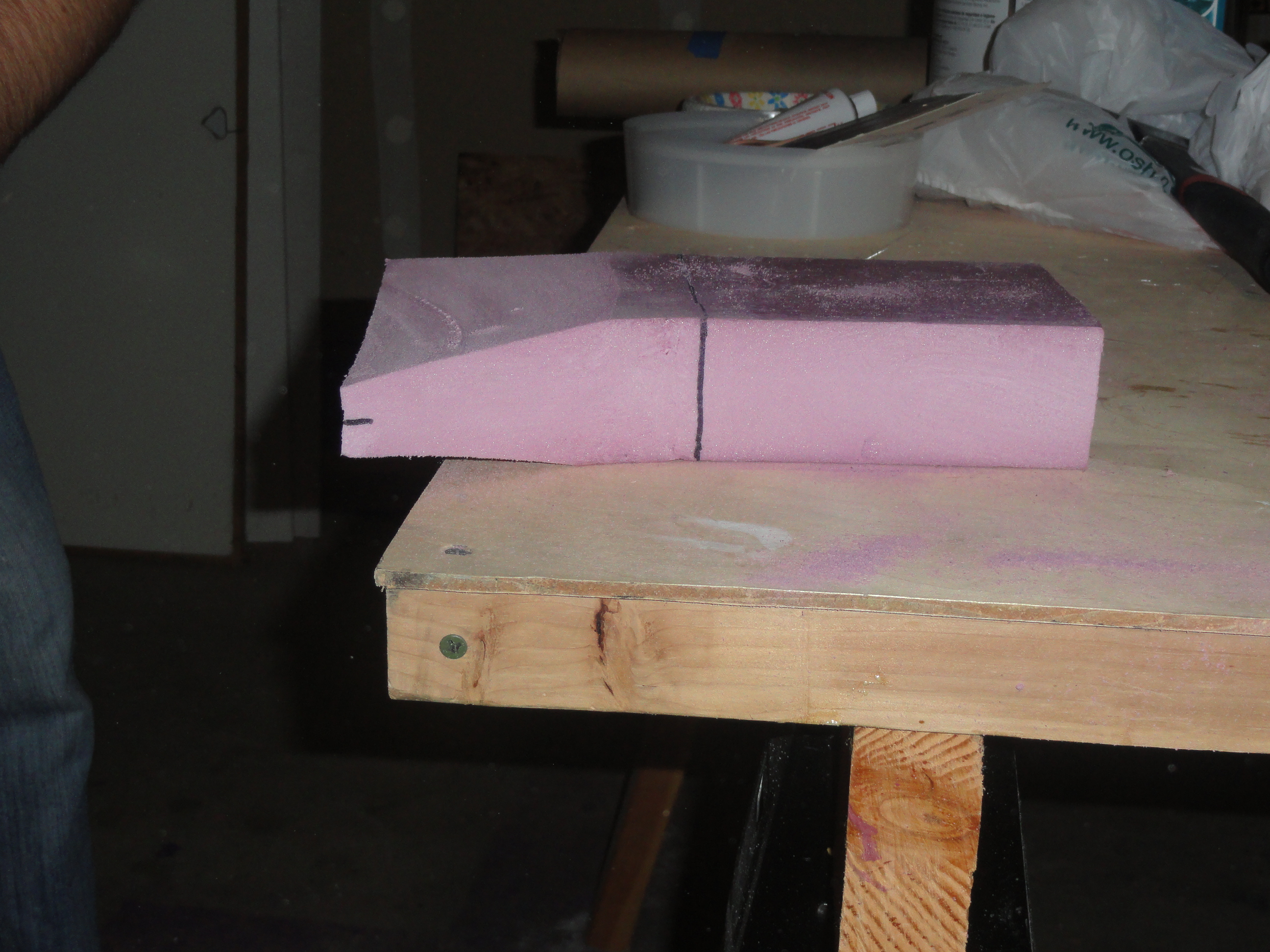 After I was happy with the curve, I cut out the foam with my vibratory cutter and left a bit of extra on all sides. I always prefer to sand down to my line. You can always cut off more but its a pain to put it back on.