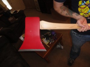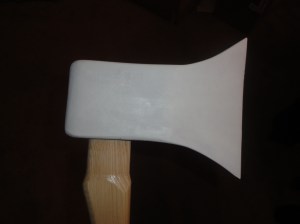 Final step was attachment of the head to the axe handle. Any glue would have worked here and I had my 2-part Epoxy sitting out already so we went with that.