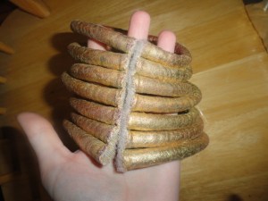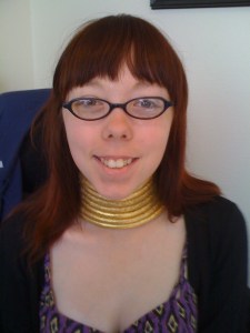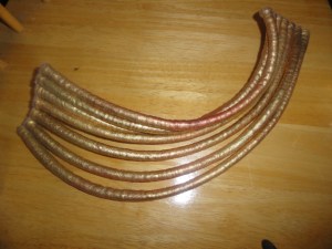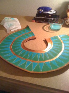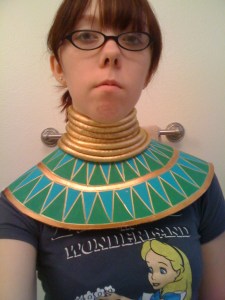 This post will cover the Witch Doctor’s neck rings, leather collar thing (is there a name for that? I dunno.), and necklaces. (Also, the picture above has a different mask than the one I made, I just used it because it has a close up on the necklaces.)