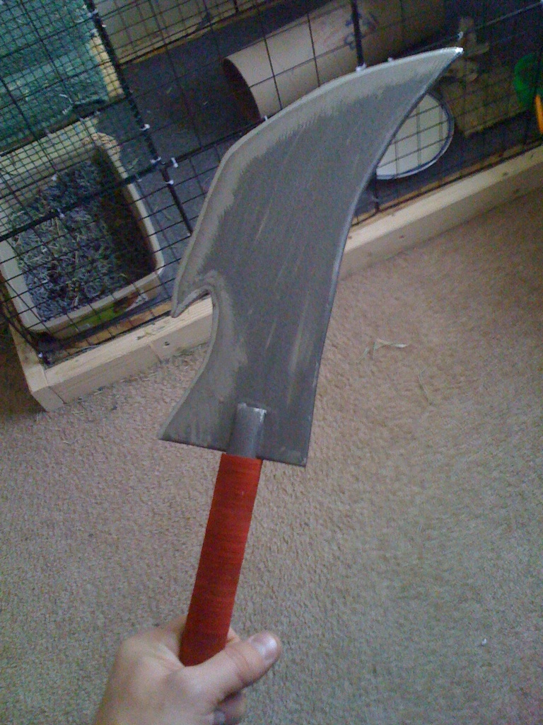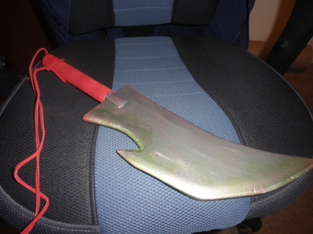We also nicked up the blade a bit, to give it some wear and tear (sometimes if a costume is too clean or too new, it just doesn’t look right!) and added the green tinge to the edge, to make it look poisoned. I think it turned out really well!