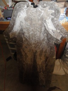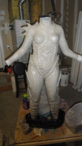In case people are wondering, we’re planning on doing this as a full body suit, cast in foam latex. We’ve been planning this since January and working on it since February. At this time, we’ve put 180 hours into it, and plan on working on it a whole lot more.
