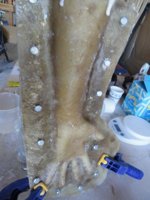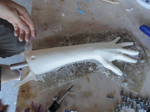 We used two different clays for our sculptures, Laguna WED clay (we went through maybe 150 lbs using it to sculpt the body suit, and using it for all the clay walls) and also Chavant Le Beau Touche (for the gloves, feet, cowl and dreads).