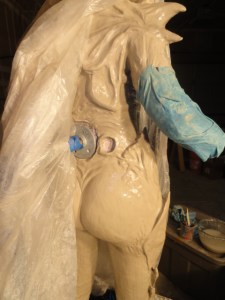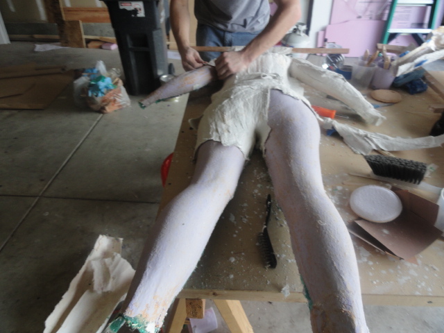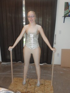 If you’re using our method for the wings, have on the corset and the body suit when you do the full body casting, that way what you’re sculpting on will have the same shape as what you’ll be under the suit. Make sure to protect the corset with some saran wrap before you start.
