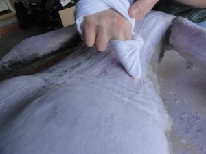I bought two body suits because I wasn’t so sure the vaseline was going to come out of the suit… it didn’t. I wore a body suit because I wasn’t comfortable with being cast naked, and because the body suit makes your body look different, so once again with what you’re sculpting on needing to be like what you’re wearing under the suit. I also used Vaseline to make sure the plaster bandages didn’t stick to the suit because it’s a lot cheaper than the Nivea cream.