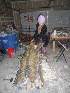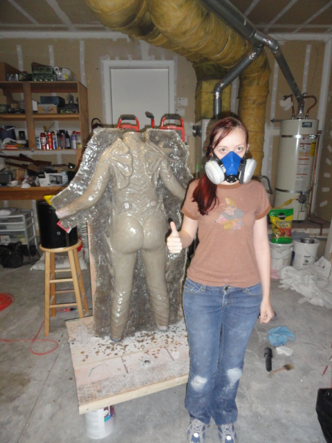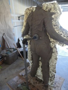 6. Let that side of fiberglass fully cure before you do the other side. Sometimes, pulling away the clay wall is a pure pain in the butt, for the body suit it took us three hours to get all of the clay wall off of the other side of the mold… it was our own fault, really, for not releasing it enough I guess, either that or it was too cold and the clay got harder therefore making it harder to remove. Either way, it sucked.