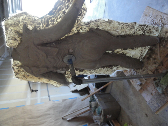So, when that side cures, carefully turn the mold over- be careful not to cut yourself on the hardened fiberglass- and start to carefully remove only the clay wall, be very careful not to damage the sculpture in any way. If there are any spots that are being especially difficult and they’re really close to the sculpture, and only if you used chavant clay on the sculpture, use some water and a small, soft brush to help get the clay loose and out of there.