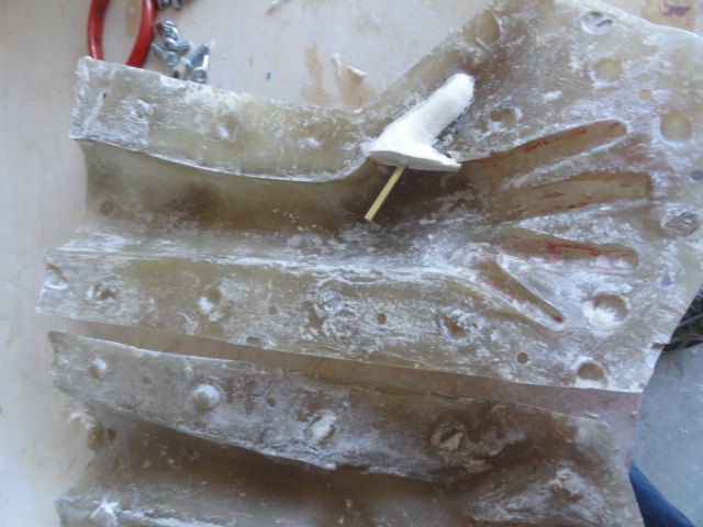 Mix the batch of the two part resin, we needed to use two containers because we didn’t have one that was large enough to hold everything we needed, and pour the resin into the mold.