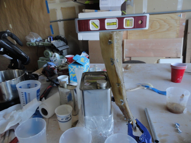 Prop the mold up vertically, and level the top of the mold so it will be even.