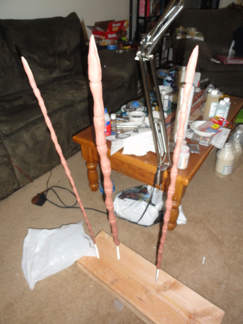 I then taped some saran wrap over it, and sculpted the dreads onto long steel tubes, so that they could be handled, would be rigid for sculpting and molding, and could be stored upright.