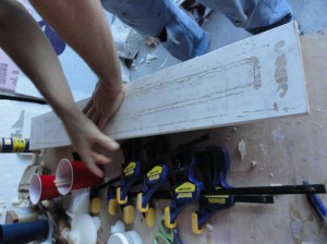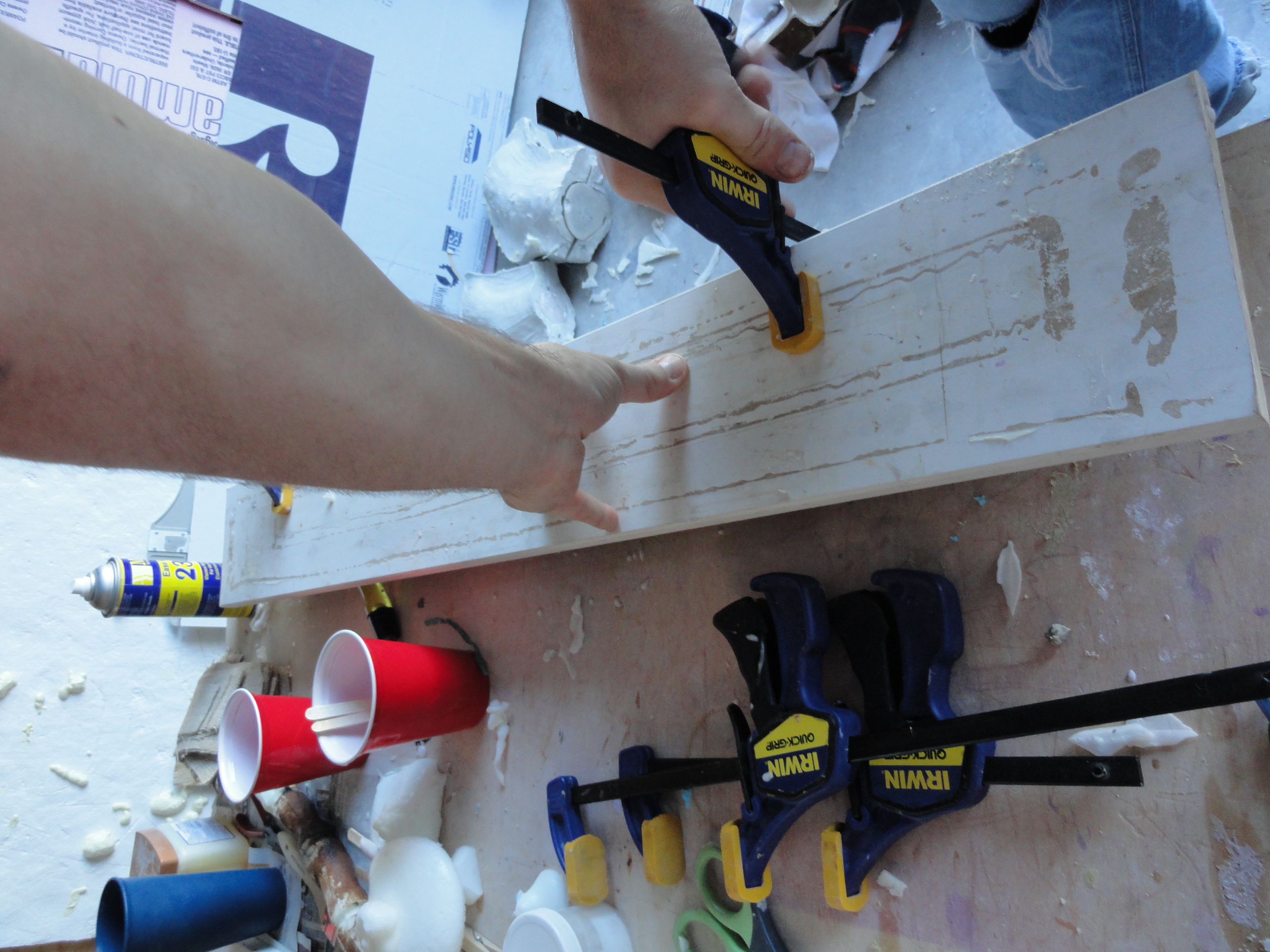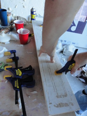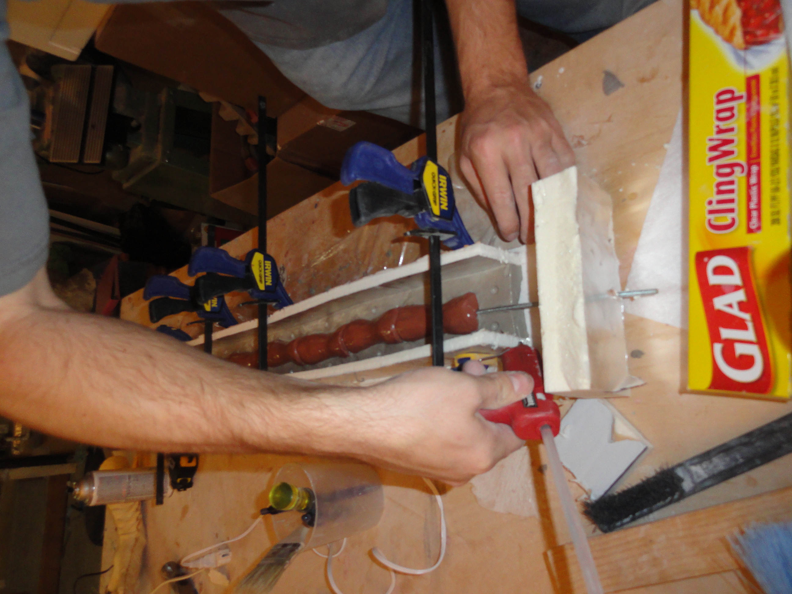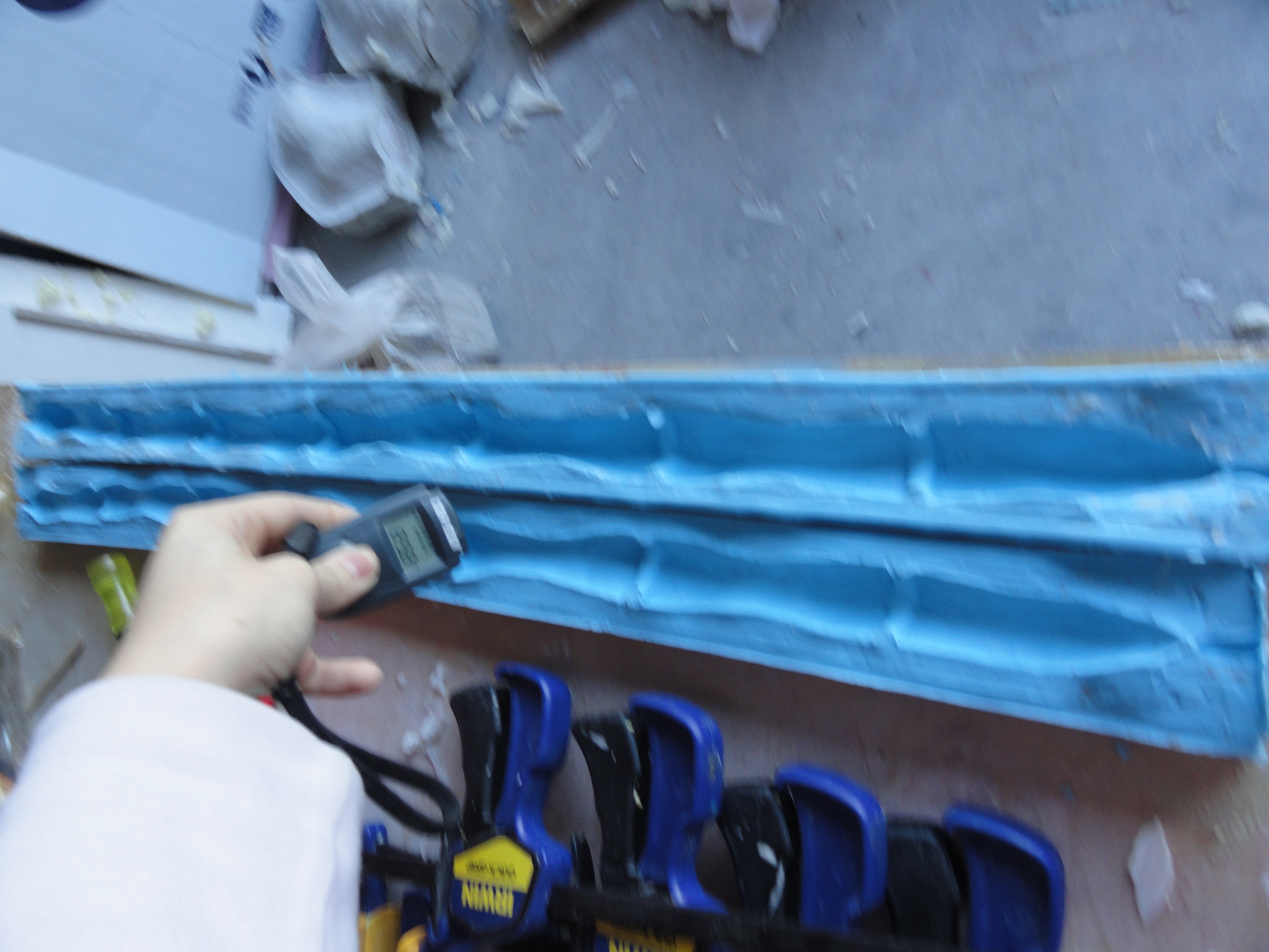 You’ll need lots of clamps, enough table edge space for the mold, and a board long enough to put on top of the mold to help hold it together while the foam is curing, as well as a temperature gauge that you can point at the mold and see how warm it is.