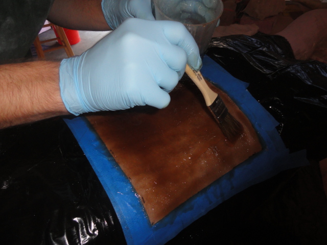 We did a simple cross lamination going up and down on one layer, then left and right on the next to enhance strength of the plate. Total count was 5 layers of fiberglass. This is also included in an earlier tutorial, here.