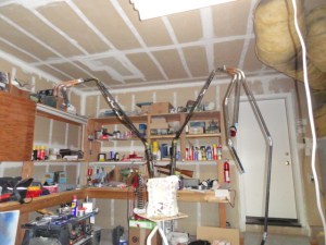 I bent and joined three pieces of pipe that would act as the joints for the fingers of the wings. These were tough to get right due to the fact that their position would affect both its angle away from the body and its slant forward and backwards.