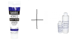 We started with a 1 : 1 Naphtha to rubber cement mix.  This should blend and homogenize into a clear but still slightly thick mixture. Next I added the paint and blended it into the mix until no chunks of paint were left and the proper color and opacity had been reached.