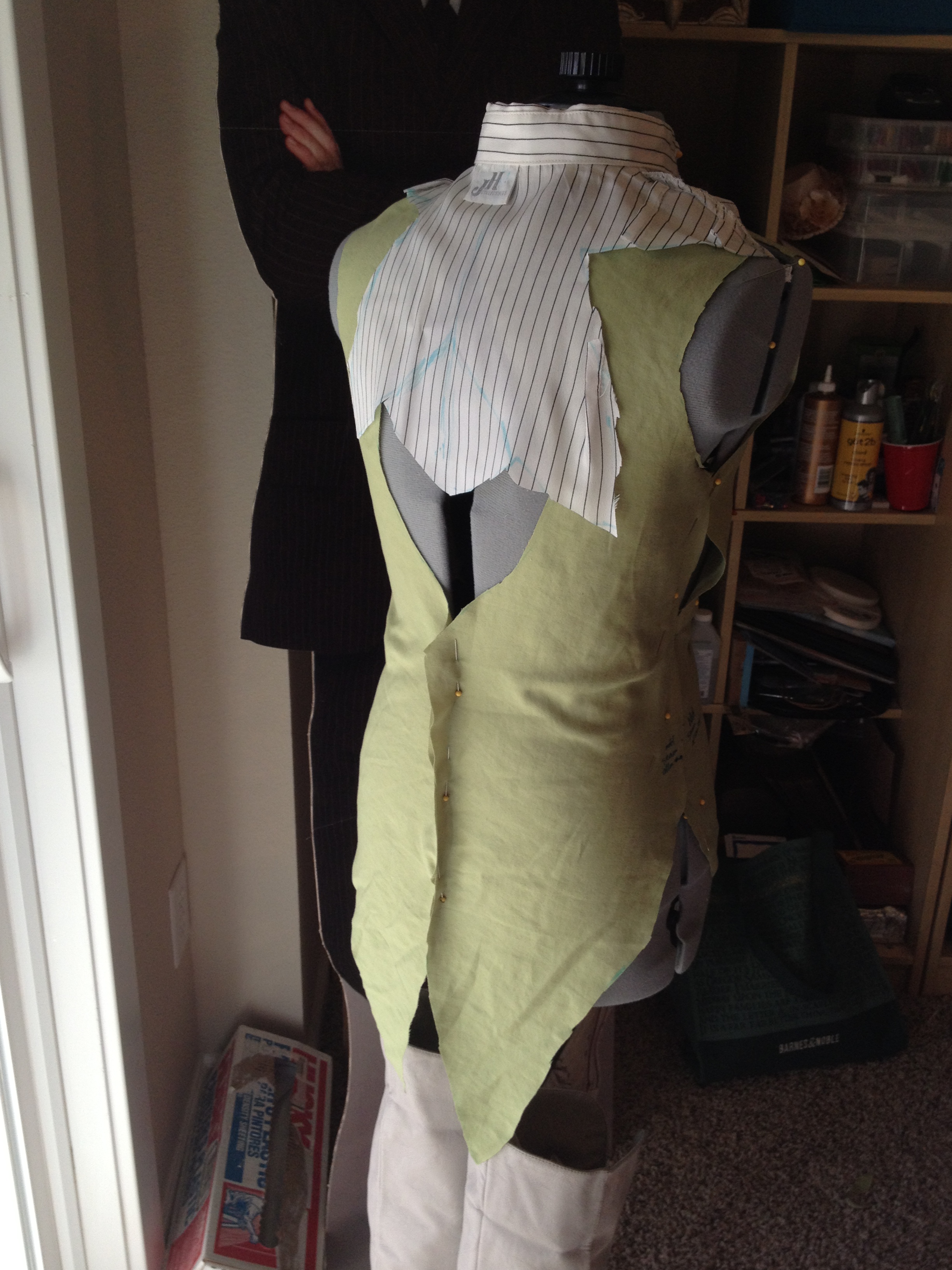 When I’m making my own costume and can’t find a pattern, I do my best to make my own. This generally consists of draping fabric over my dress form, and drawing out the costume as I see it.