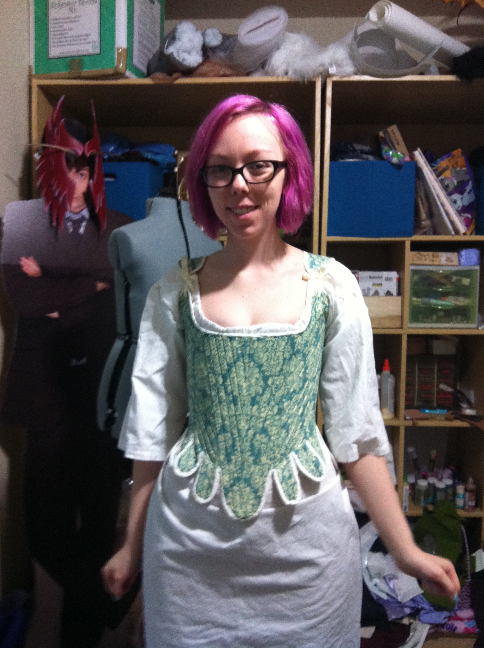 I also sewed a chemise, but it was a bit restricting on the legs so I ended up wearing shorts and a tank top underneath instead.