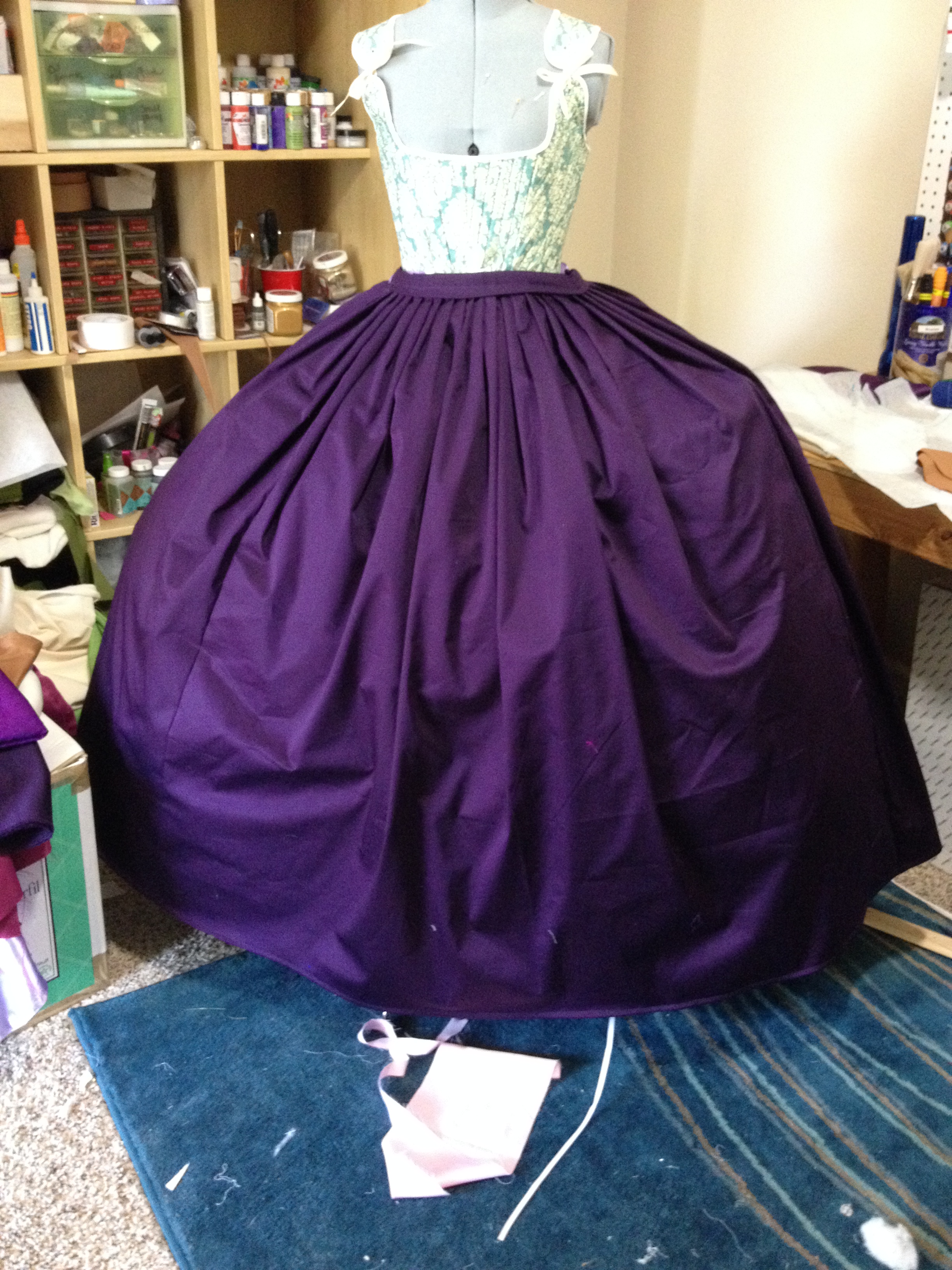Once that was patterned out, I made the underskirt (or petticoat) that will be right under the dress, with the armored plating attached to the front. I knew the color wouldn’t show, but I still wanted it to be something that matched the dress just in case.