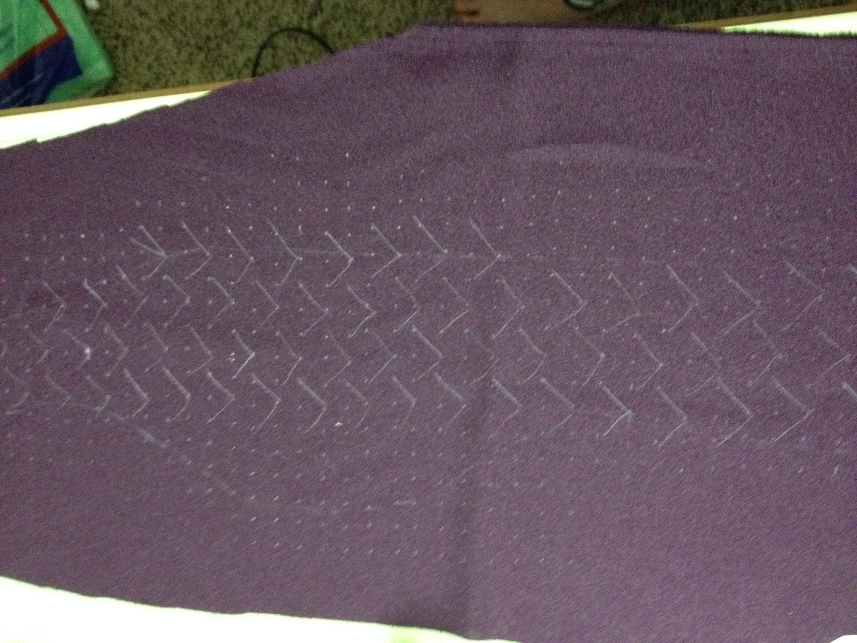 The most time intensive part of this, after figuring out how much the piece shrinks after you smock it, was marking the dots and the pattern out. I used 1/2 inch square dots for mine.