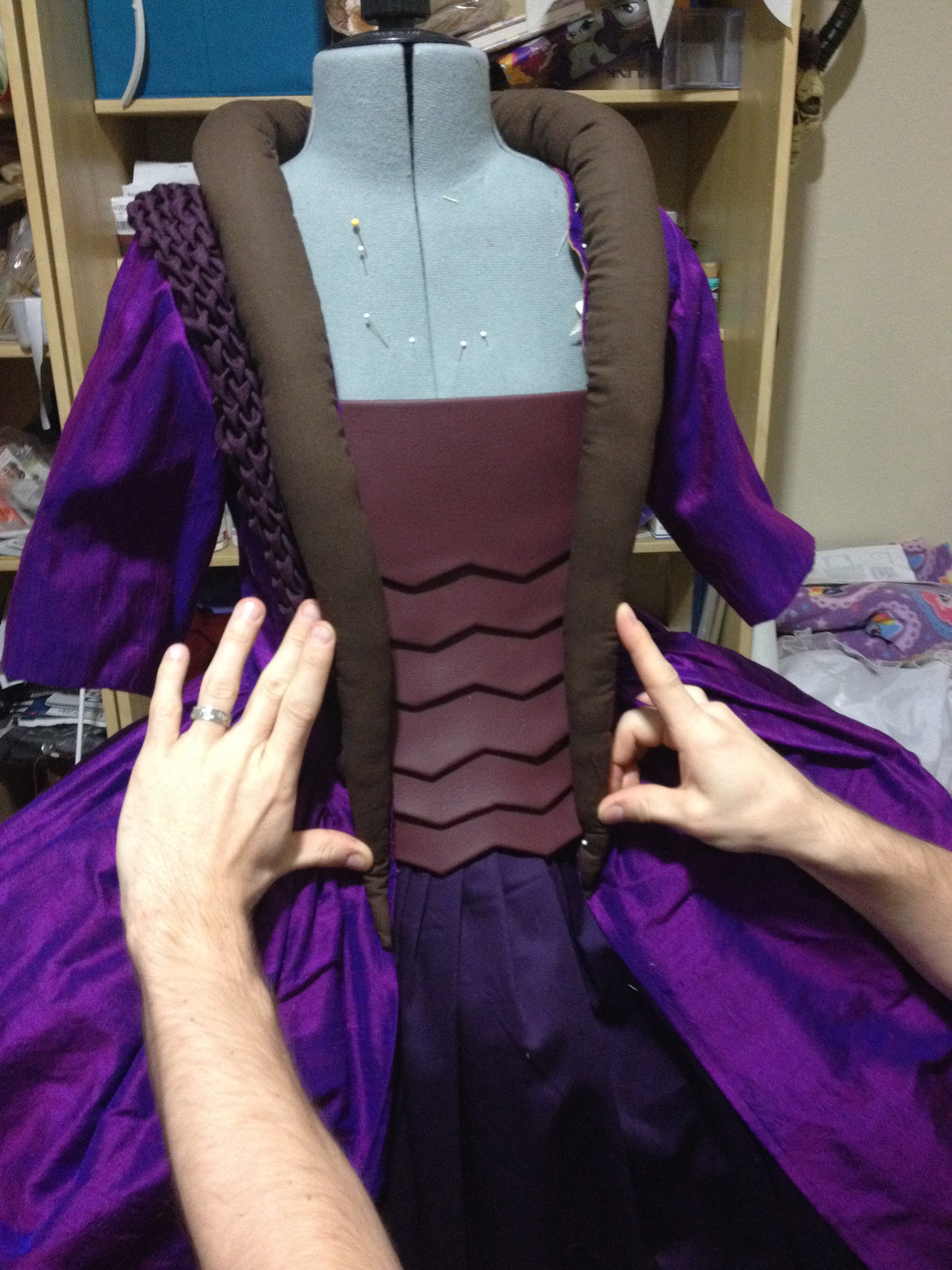 This costume basically started with me turning to Mario and saying, “I want to wear a big dress to BlizzCon this year.” I’ve always been in love with the Zerg, and thought about doing Kerrigan (this was way back in January before Countess Kerrigan was a thing) so I talked to my amazing friend Carissa (link is to her Facebook page, check out her work!) about helping me figure out the costume and getting my ideas onto paper.