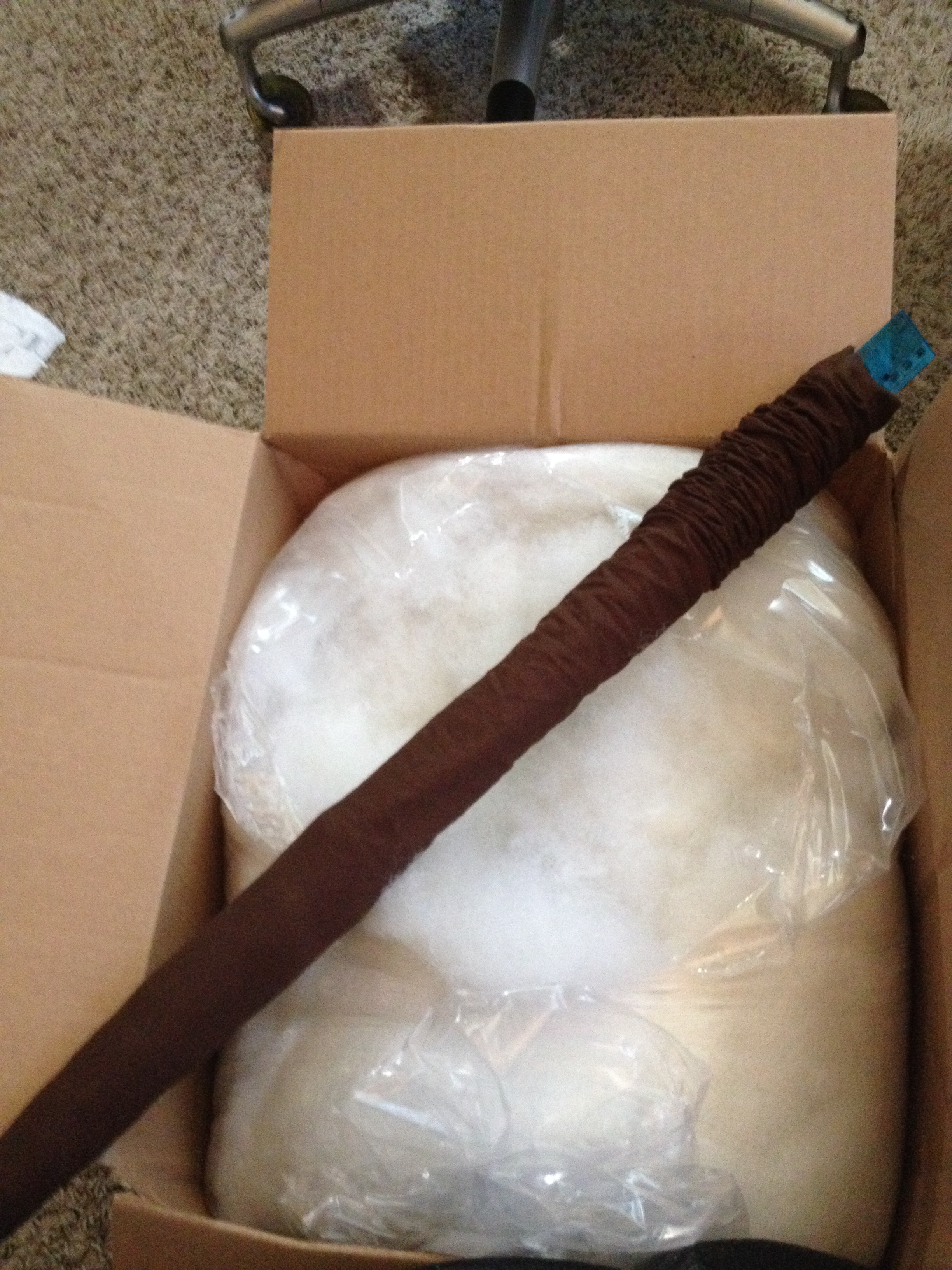At first, I had issues stuffing these stupid long legs with fiber fill, but then I used a an empty paper towel roll to scrunch up the fabric and hold it steady while I used a ruler to push the filling down into the legs, and it worked great!