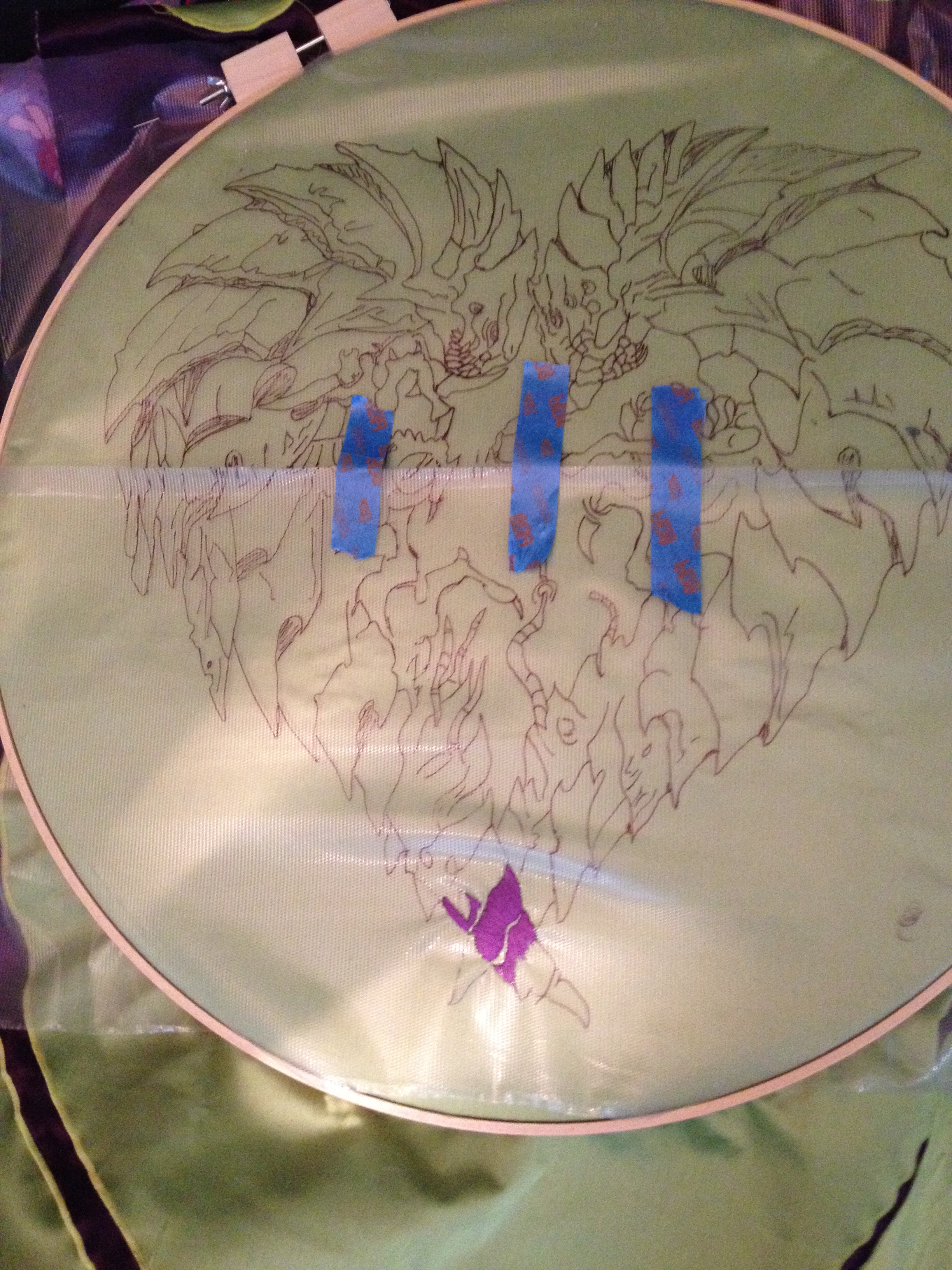 I transferred the line art onto an embroidery interfacing that dissolves with heat…
