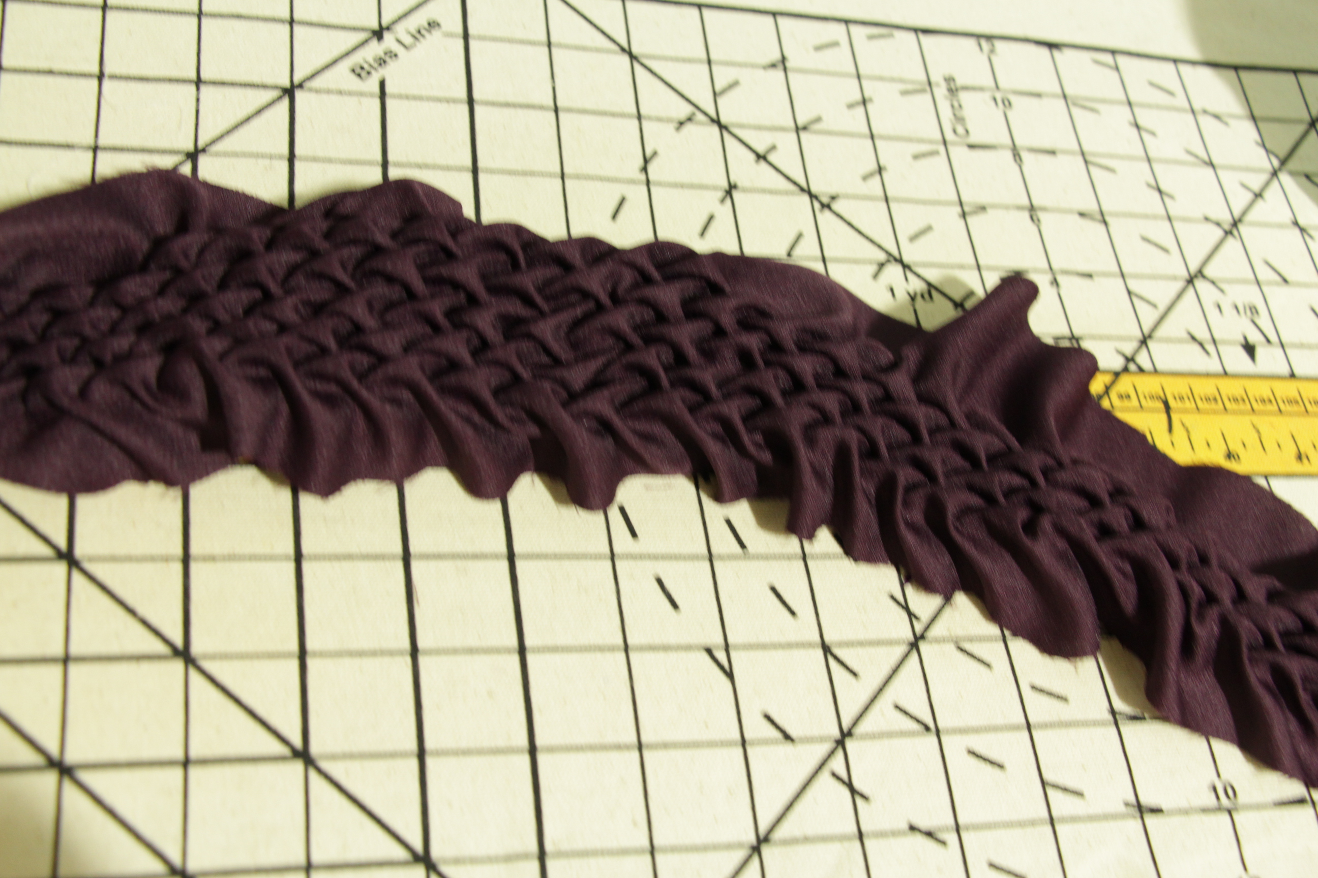 Inspired by the smocking on this 18th century dress, I decided to do something similar and add it in to give it a much more bug-like texture. This kind of smocking is called Canadian or arrow smocking, and I learned about it here.